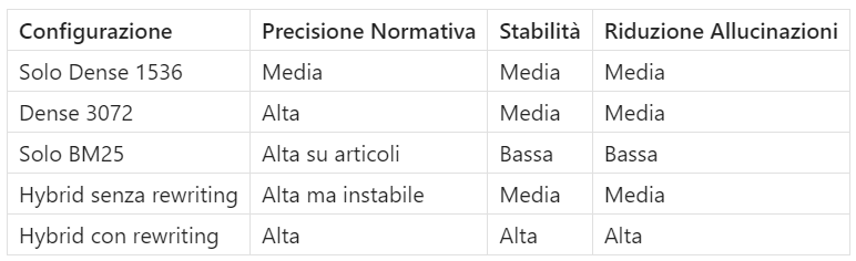 Una volta che la query è corretta, entra in gioco il retrieval ibrido. Dense Retrieval (Embedding 3072)